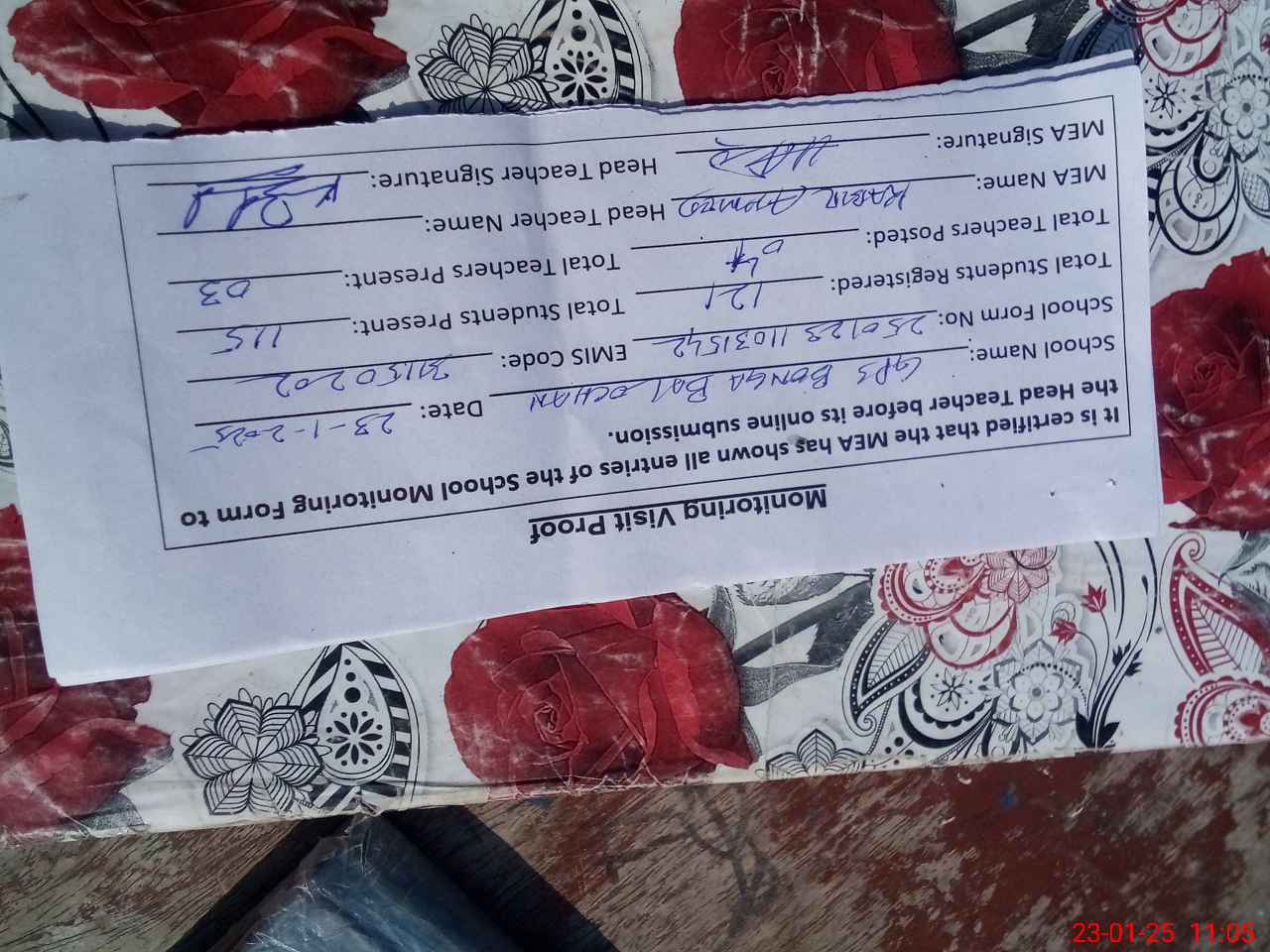 | EMIS Code: 31150202 | Name of School: GPS BONGA BALOCHAN | |||