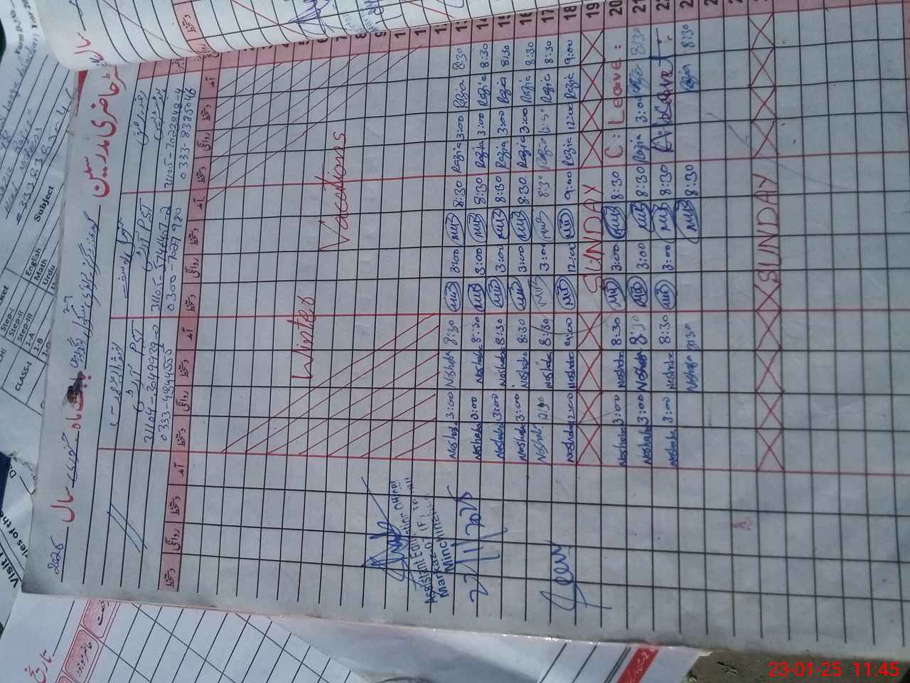 | Name: RA**** RA**** Designation: (School Headmaster's/Headmistress's) PST Phone/Cell Number: 03**** |