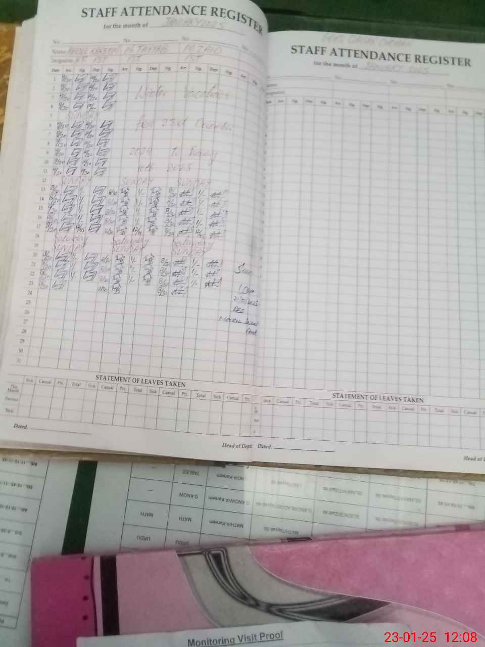 | Attendance Register | Head Teacher | MEA with School | Visit Proof |