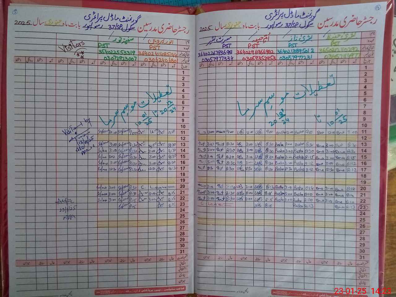 | Name: BU**** HA**** Designation: (School Headmaster's/Headmistress's) PST Phone/Cell Number: 03**** |
