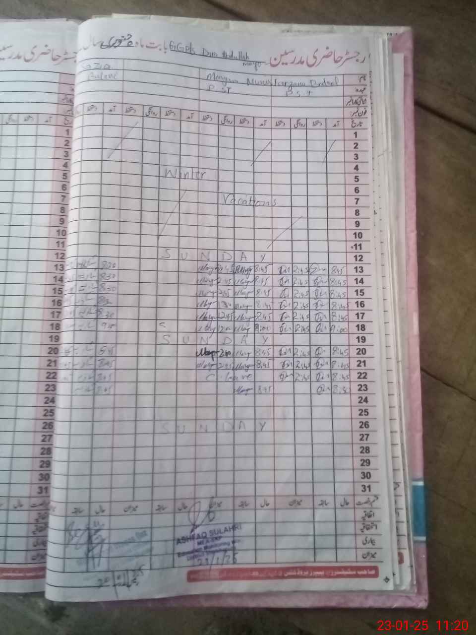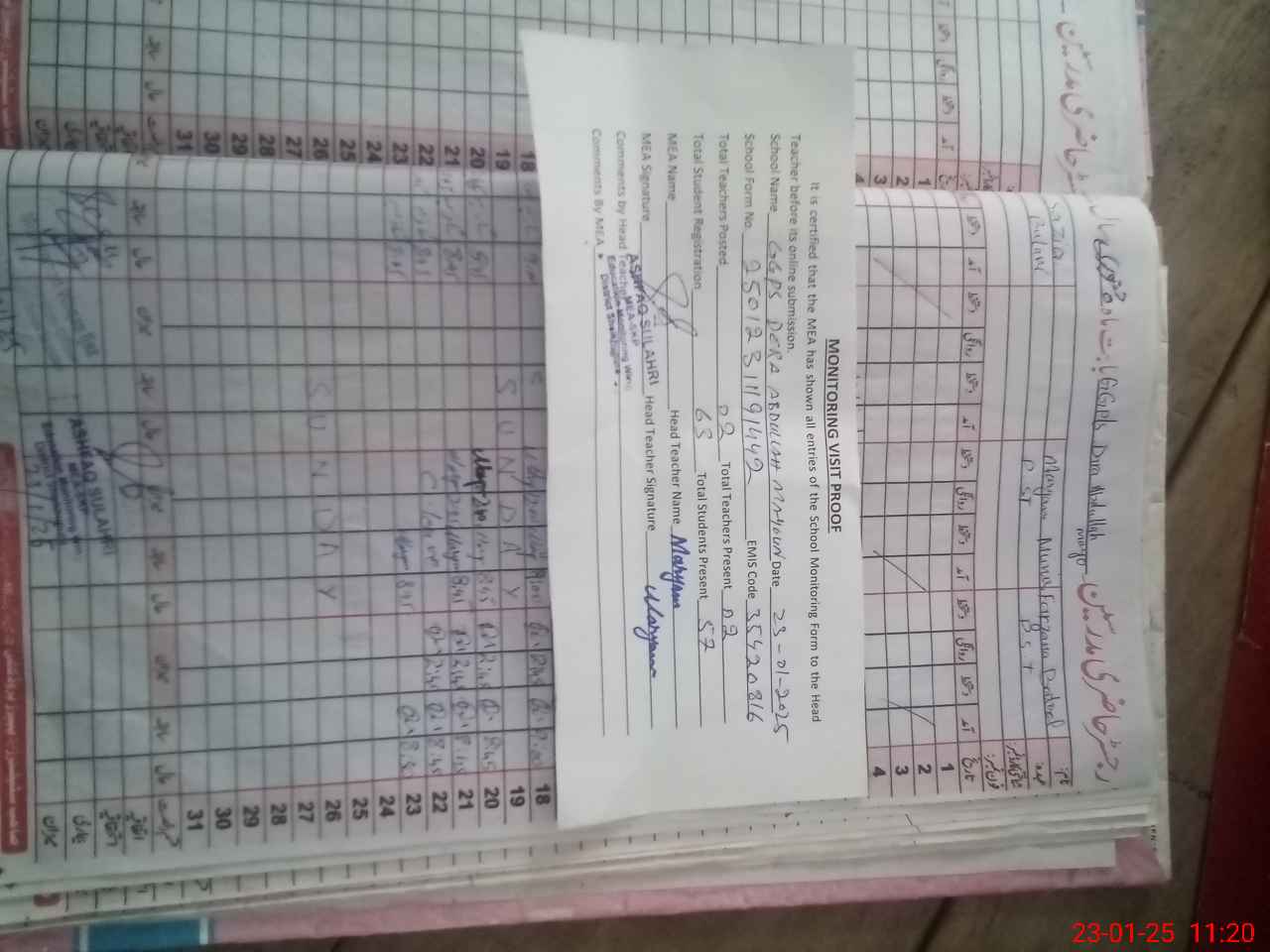 | Attendance Register | Head Teacher | MEA with School | Visit Proof |