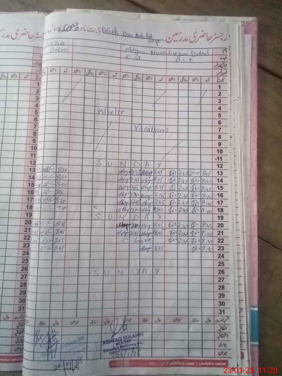 | Name: MA**** MU**** Designation: (School Headmaster's/Headmistress's) PST Phone/Cell Number: 03**** |