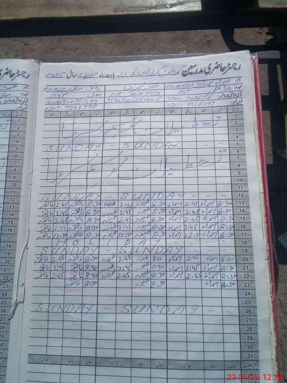 | Name: AS**** SH**** Designation: (School Headmaster's/Headmistress's) PST Phone/Cell Number: 03**** |