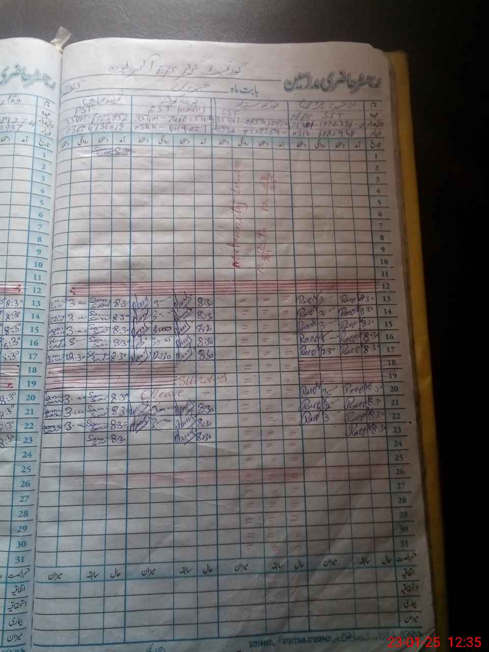 | CNIC | Full Name | Designation | R/C | Absence During Last Calender Month |
