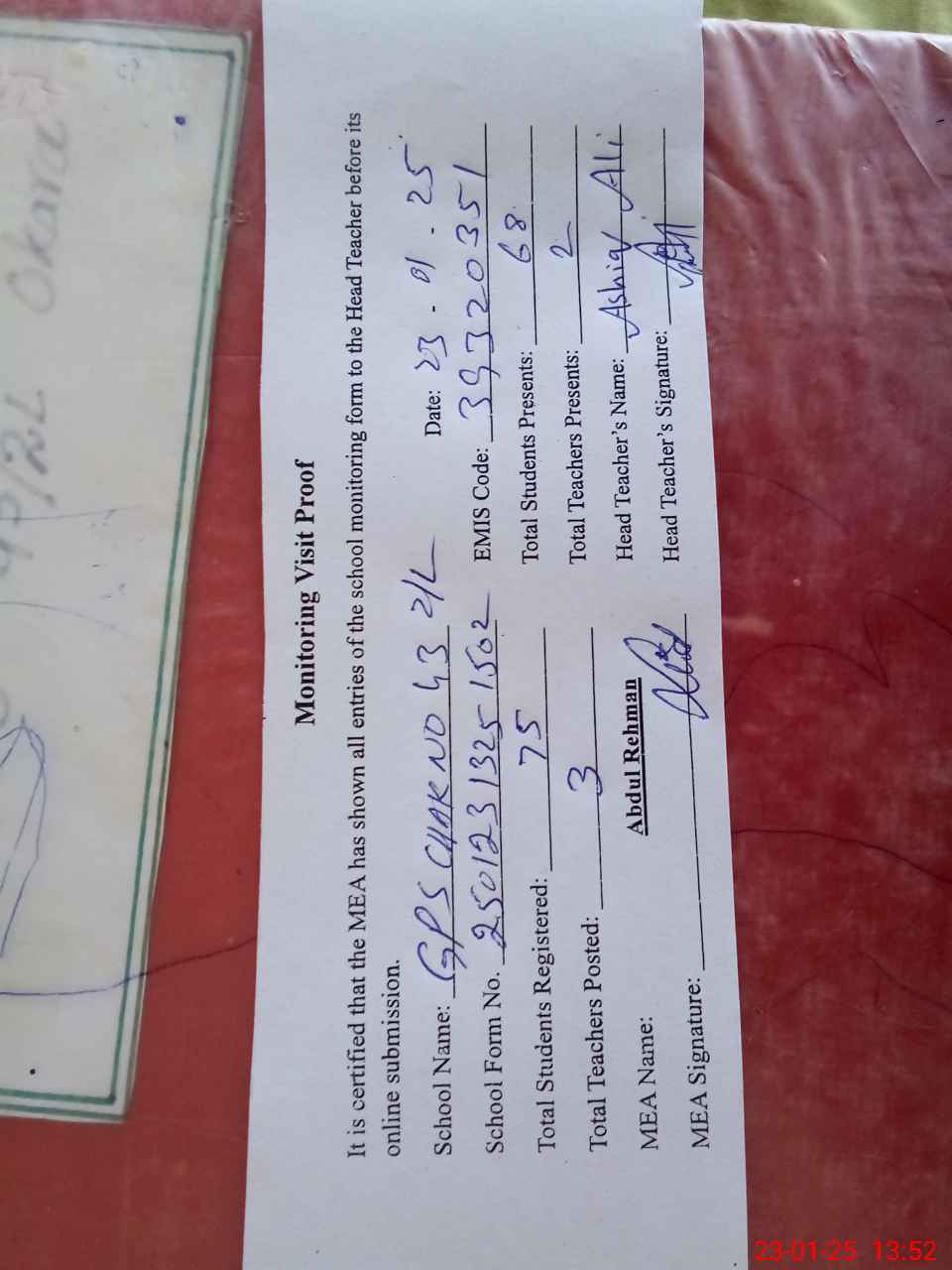 | EMIS Code: 39320351 | Name of School: GPS CHAK 43/2-L | |||