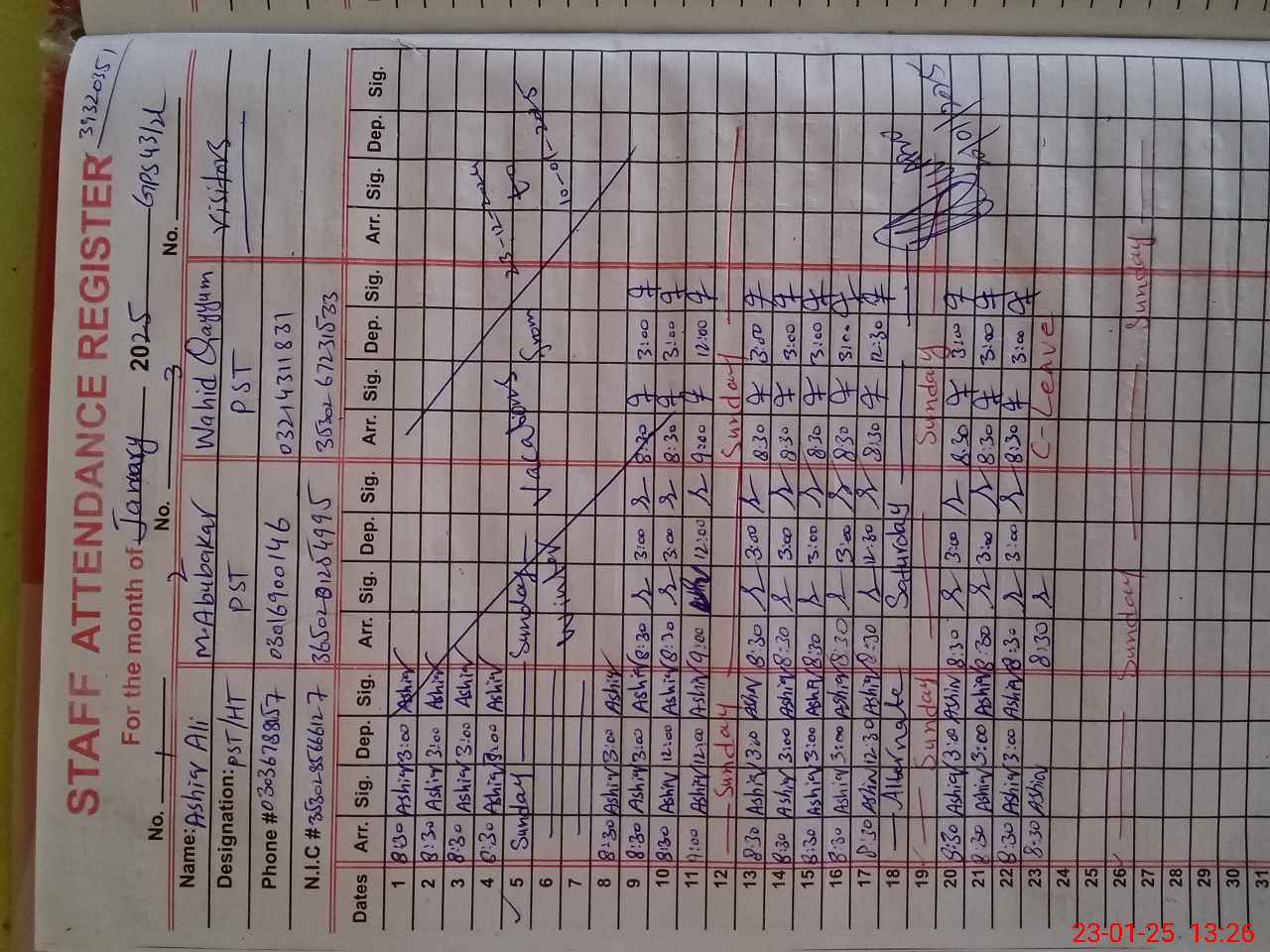 | Name: As**** Al**** Designation: (School Headmaster's/Headmistress's) PST Phone/Cell Number: 03**** |