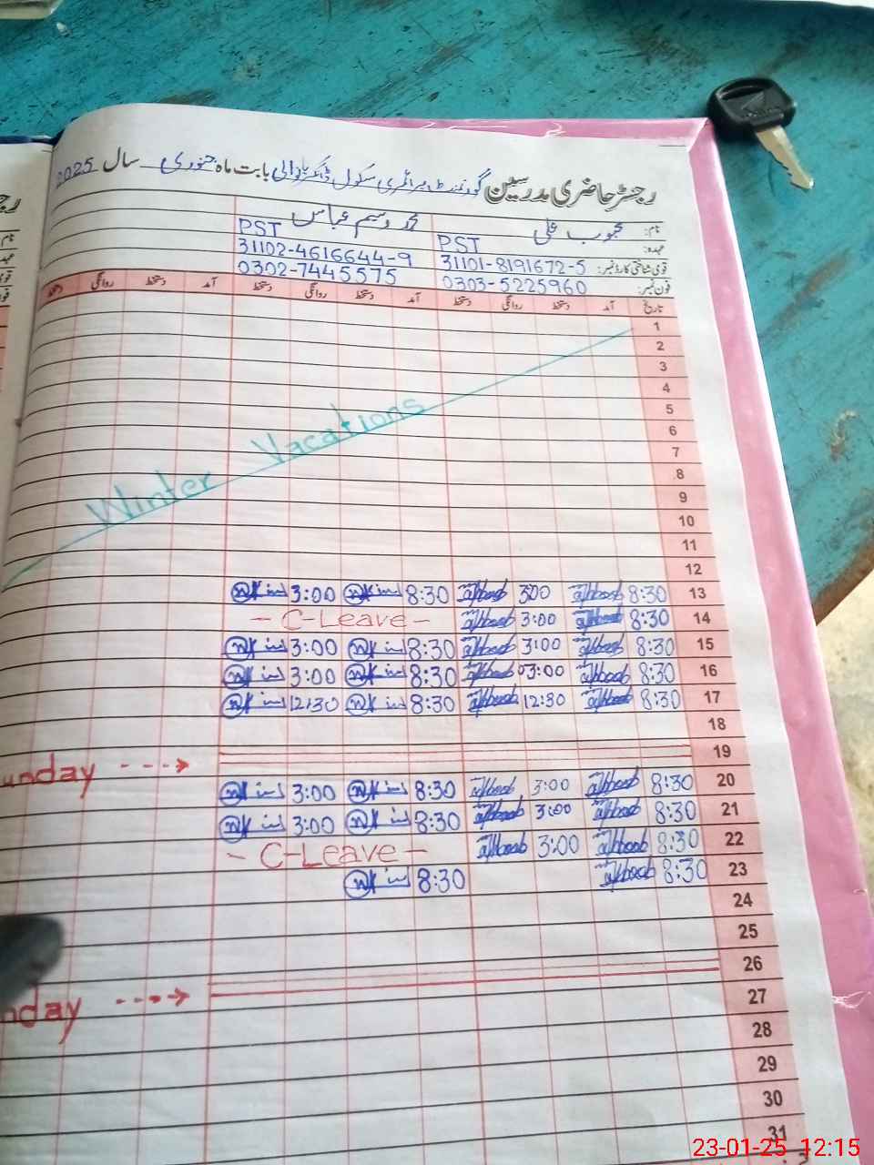 | CNIC | Full Name | Designation | R/C | Absence During Last Calender Month |