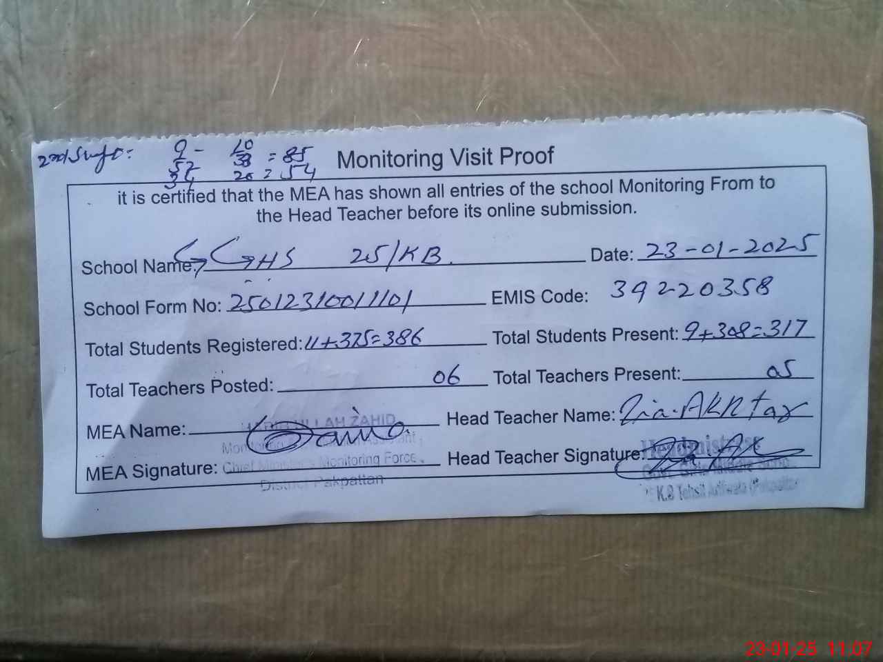 | EMIS Code: 39220358 | Name of School: GGHS 25 KB | |||