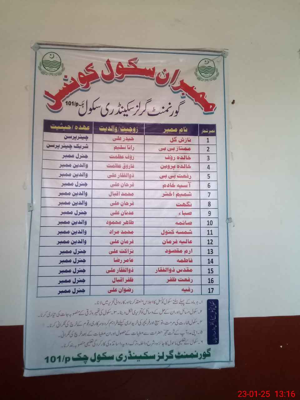 | EMIS Code: 31330148 | Name of School: GGHS CHAK NO. 101/P | |||