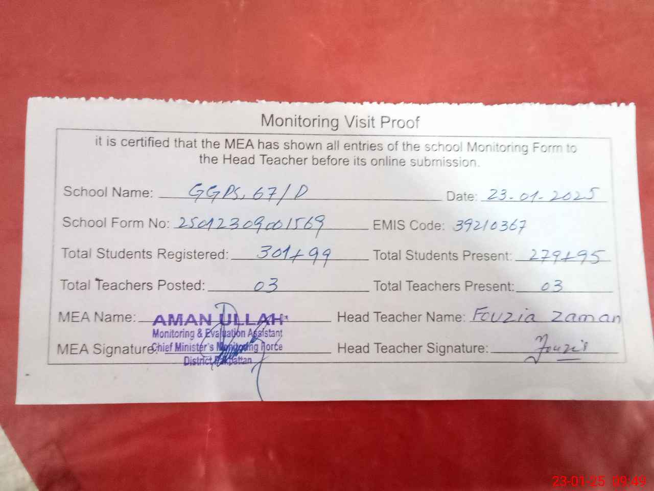 | EMIS Code: 39210367 | Name of School: GGPS 67 D | |||