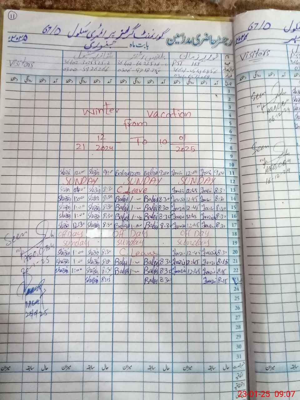 | School Visited by School Health & Nutrition Supervisor (No. of Visits) | Name1: | Samina Kousar | Name2: | Nil | |