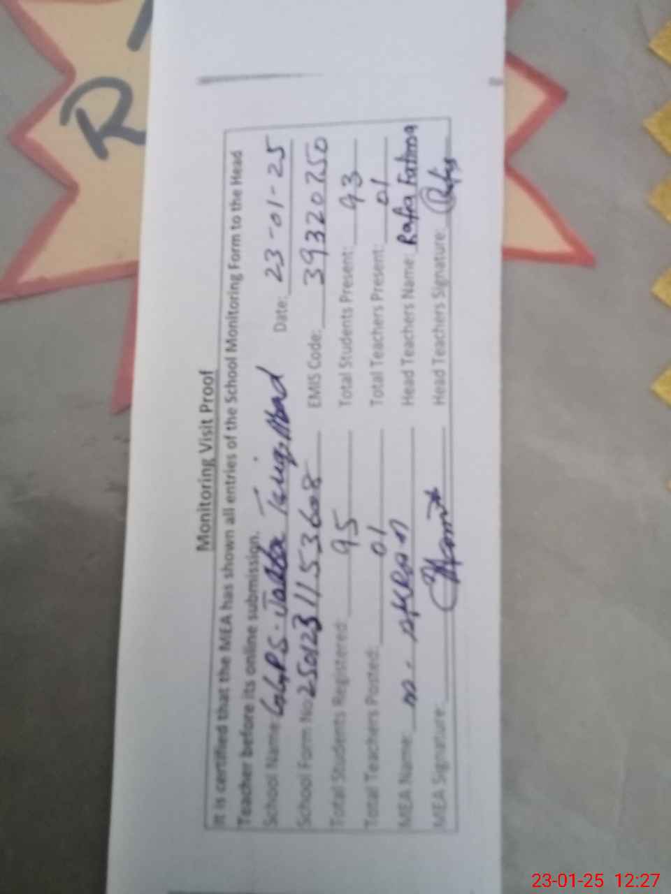 | EMIS Code: 39320750 | Name of School: GGPS CHAK JOOTA / TARIQ ABAD | |||