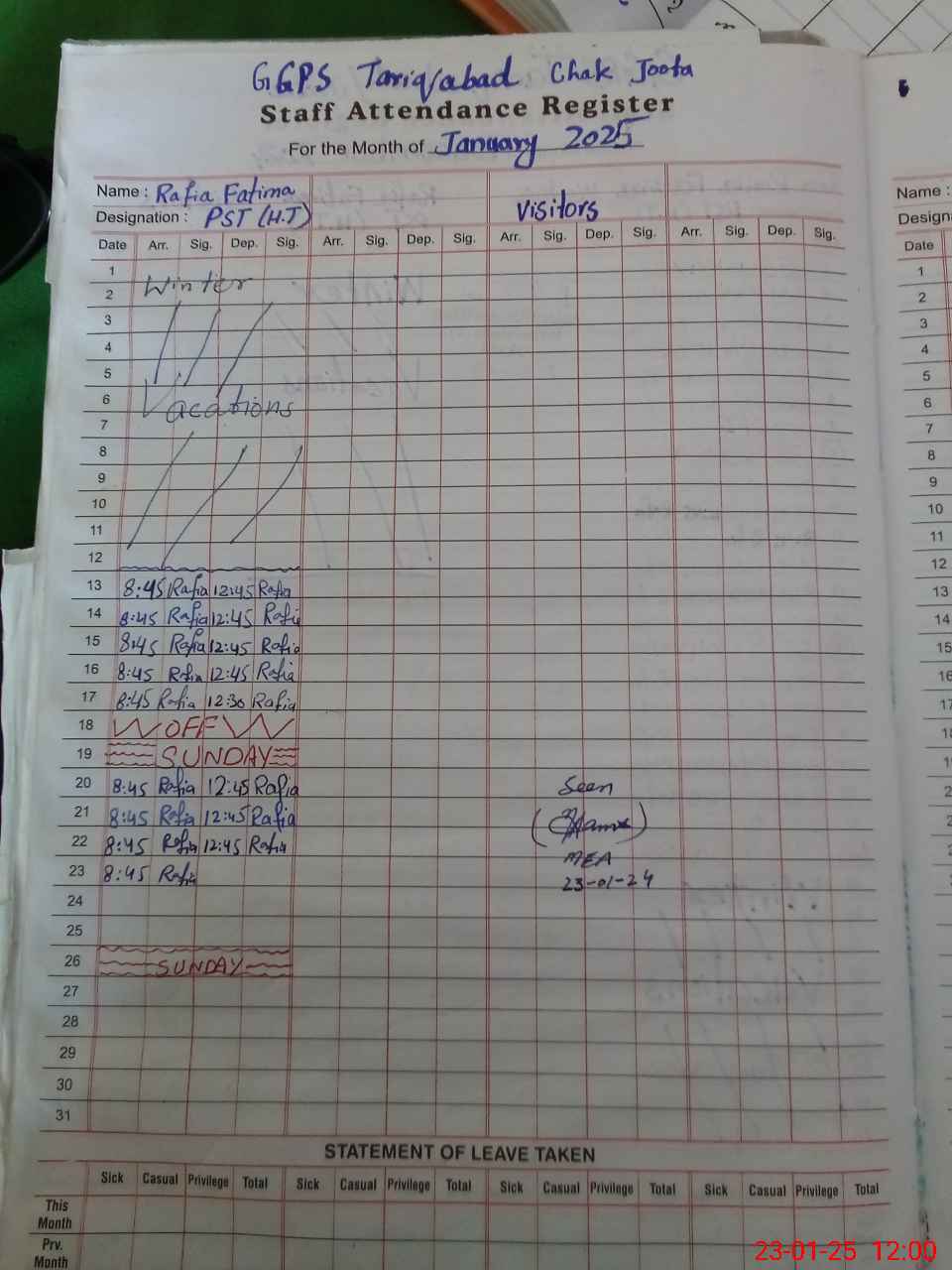 | Name: Ra**** Fa**** Designation: (School Headmaster's/Headmistress's) PST Phone/Cell Number: 03**** |