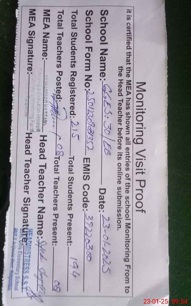 | Attendance Register | Head Teacher | MEA with School | Visit Proof |