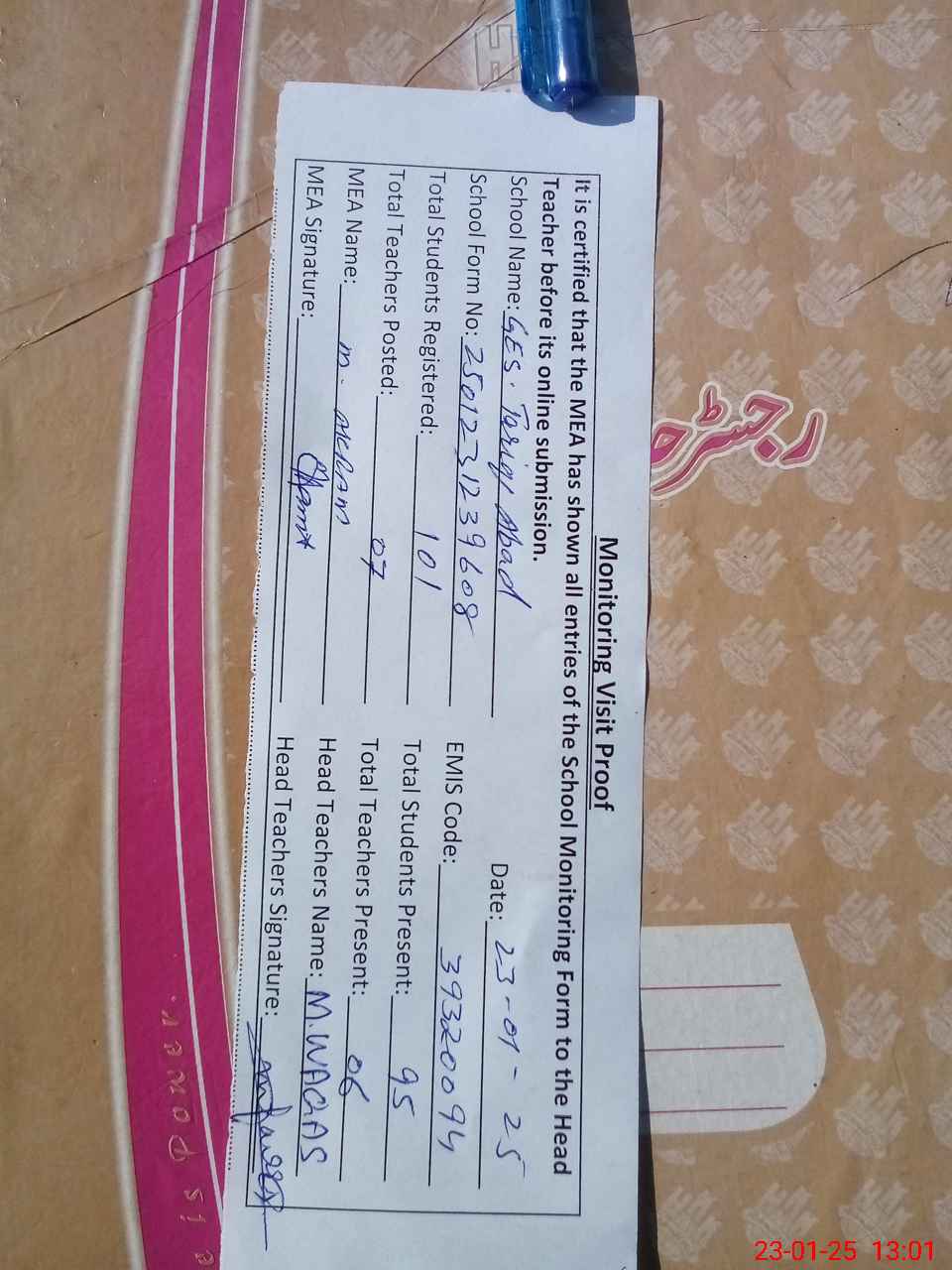| EMIS Code: 39320094 | Name of School: GES TARIQ ABAD | |||