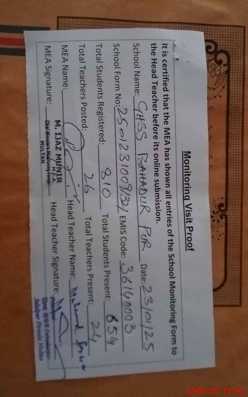 | EMIS Code: 36140003 | Name of School: GHSS BAHADAR PUR | |||
