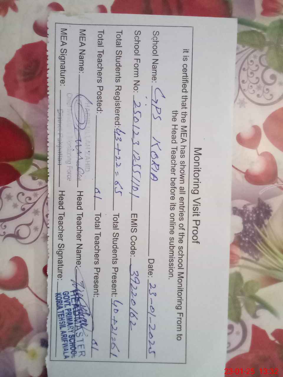 | EMIS Code: 39220162 | Name of School: GPS KORIA | |||
