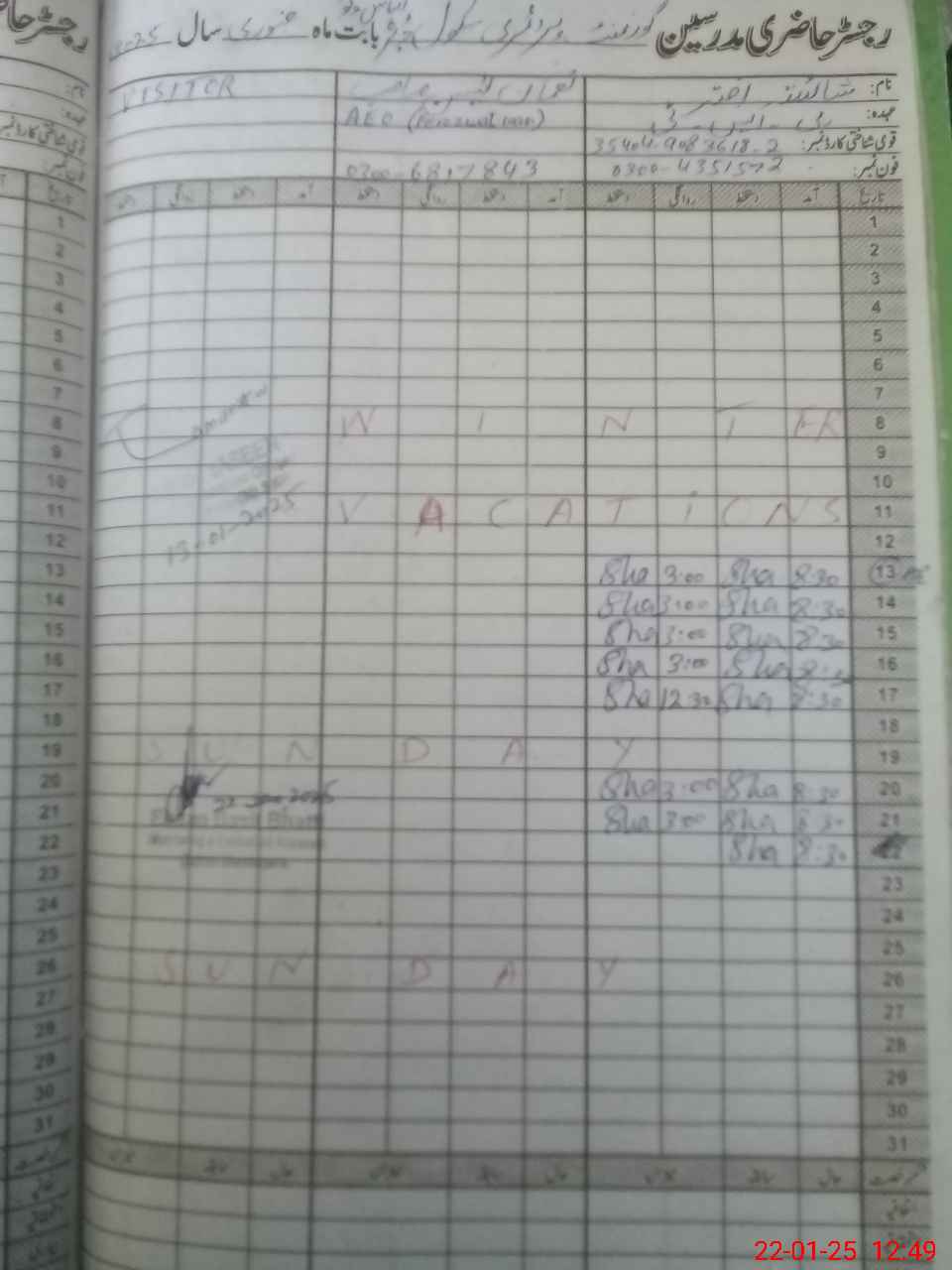 | Name: Sh**** Ak**** Designation: (School Headmaster's/Headmistress's) PST Phone/Cell Number: 03**** |