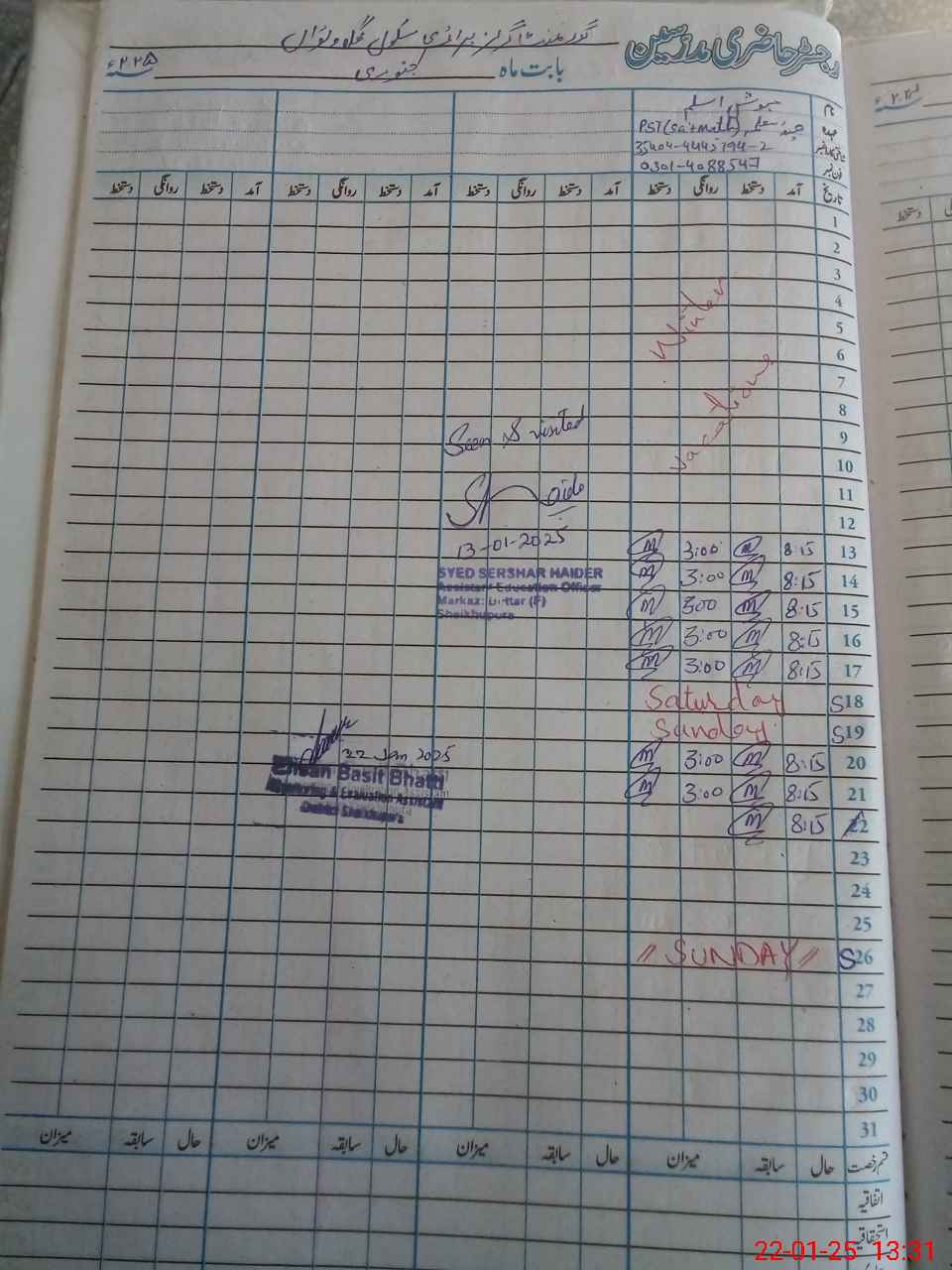 | Name: Ma**** As**** Designation: (School Headmaster's/Headmistress's) PST Phone/Cell Number: 03**** |