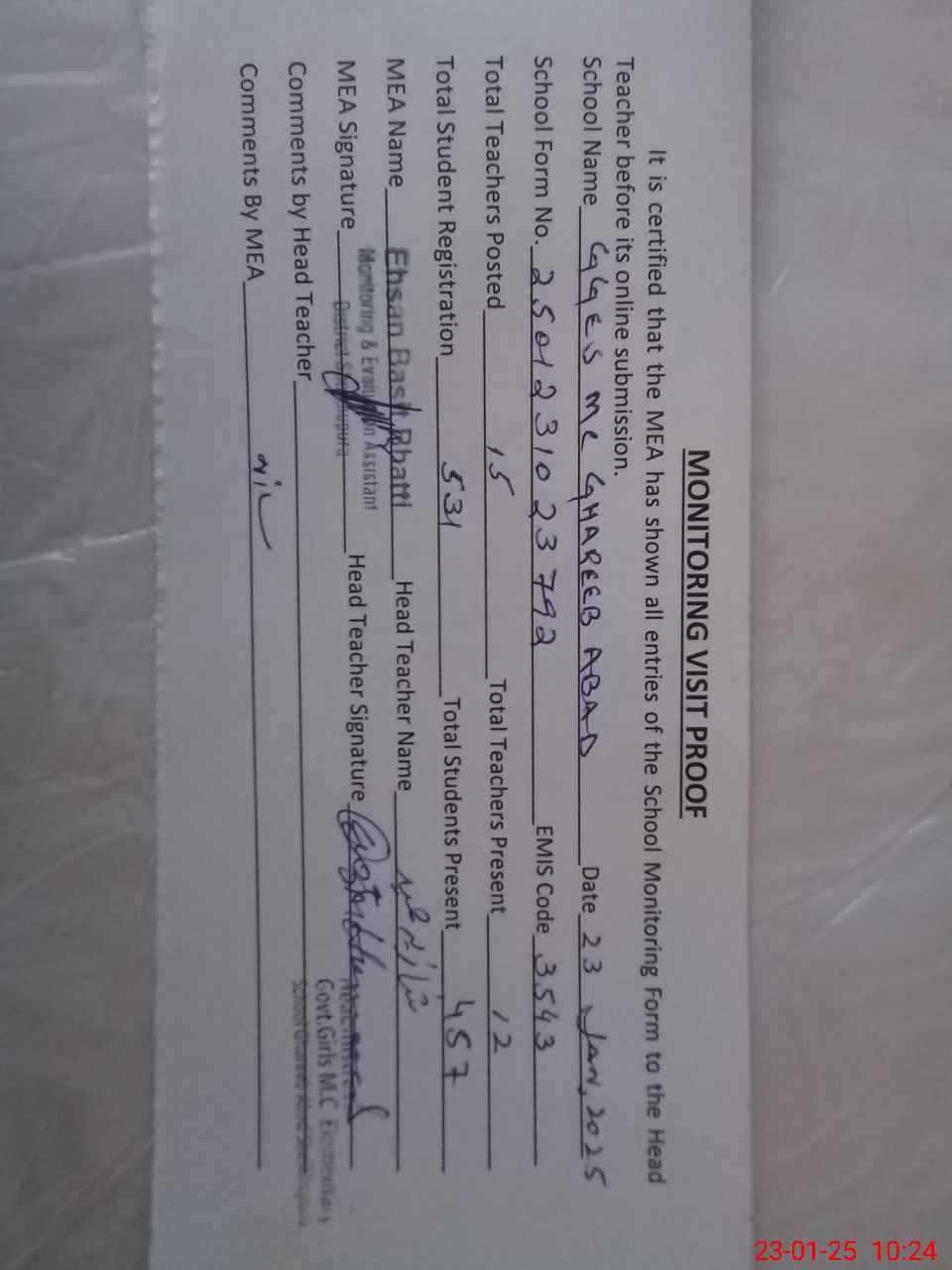 | EMIS Code: 35431152 | Name of School: GGES MC GHAREEB ABAD | |||