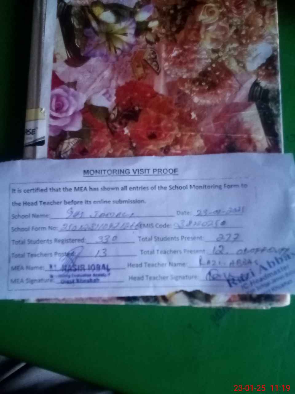 | EMIS Code: 38220250 | Name of School: GHS JAMALI | |||