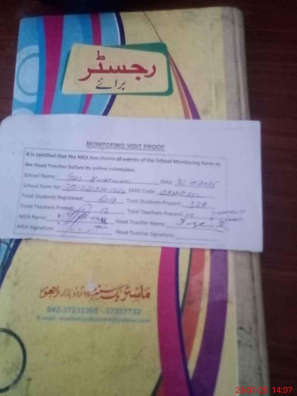 | Attendance Register | Head Teacher | MEA with School | Visit Proof |