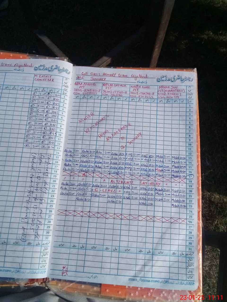 | Name: MI**** JA**** Designation: (School Headmaster's/Headmistress's) PST Phone/Cell Number: 03**** |
