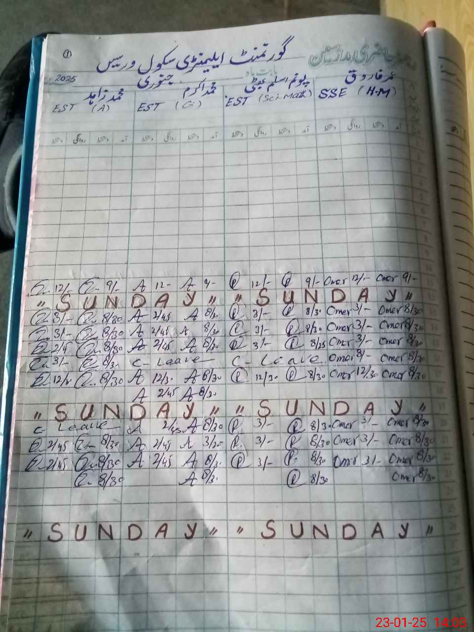 | CNIC | Full Name | Designation | R/C | Absence During Last Calender Month |