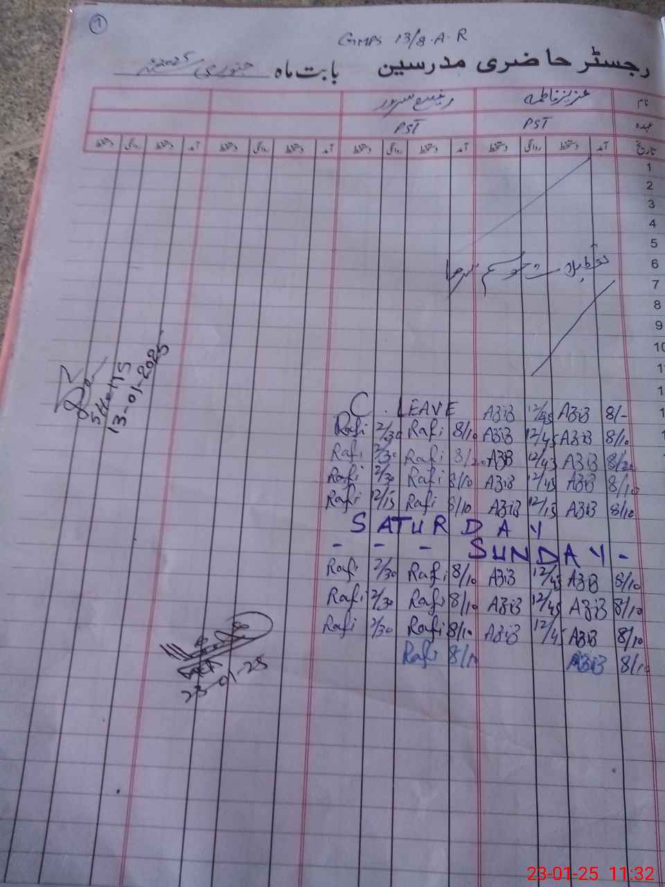 | CNIC | Full Name | Designation | R/C | Absence During Last Calender Month |