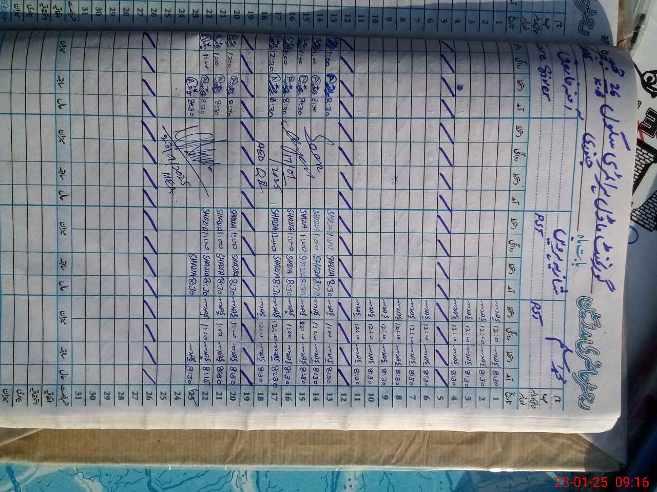 | CNIC | Full Name | Designation | R/C | Absence During Last Calender Month |