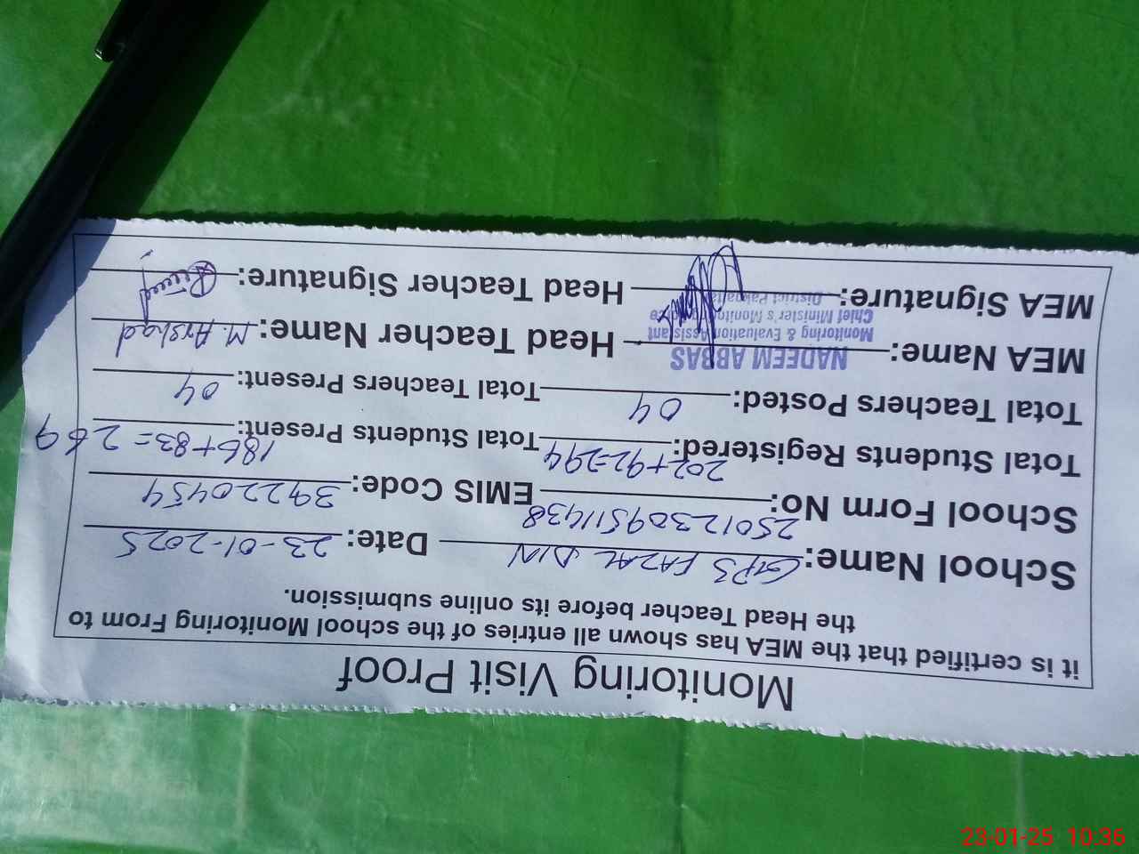| EMIS Code: 39220454 | Name of School: GPS FAZAL DIN | |||