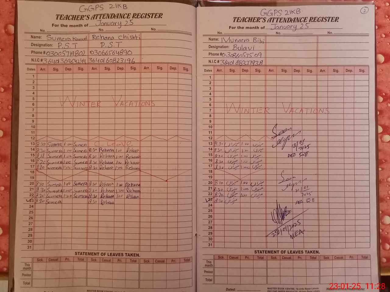 | Name: GU**** IS**** Designation: (School Headmaster's/Headmistress's) PST Phone/Cell Number: 03**** |