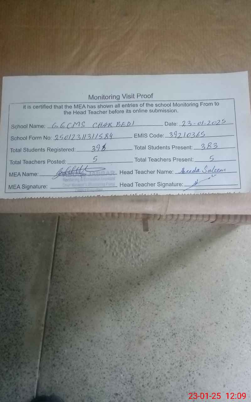 | EMIS Code: 39210365 | Name of School: GGCMS CHAK BEDI | |||