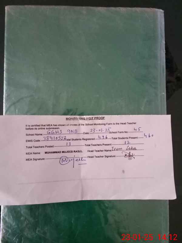 | EMIS Code: 38410527 | Name of School: GGHS CHAK NO.9 NB | |||