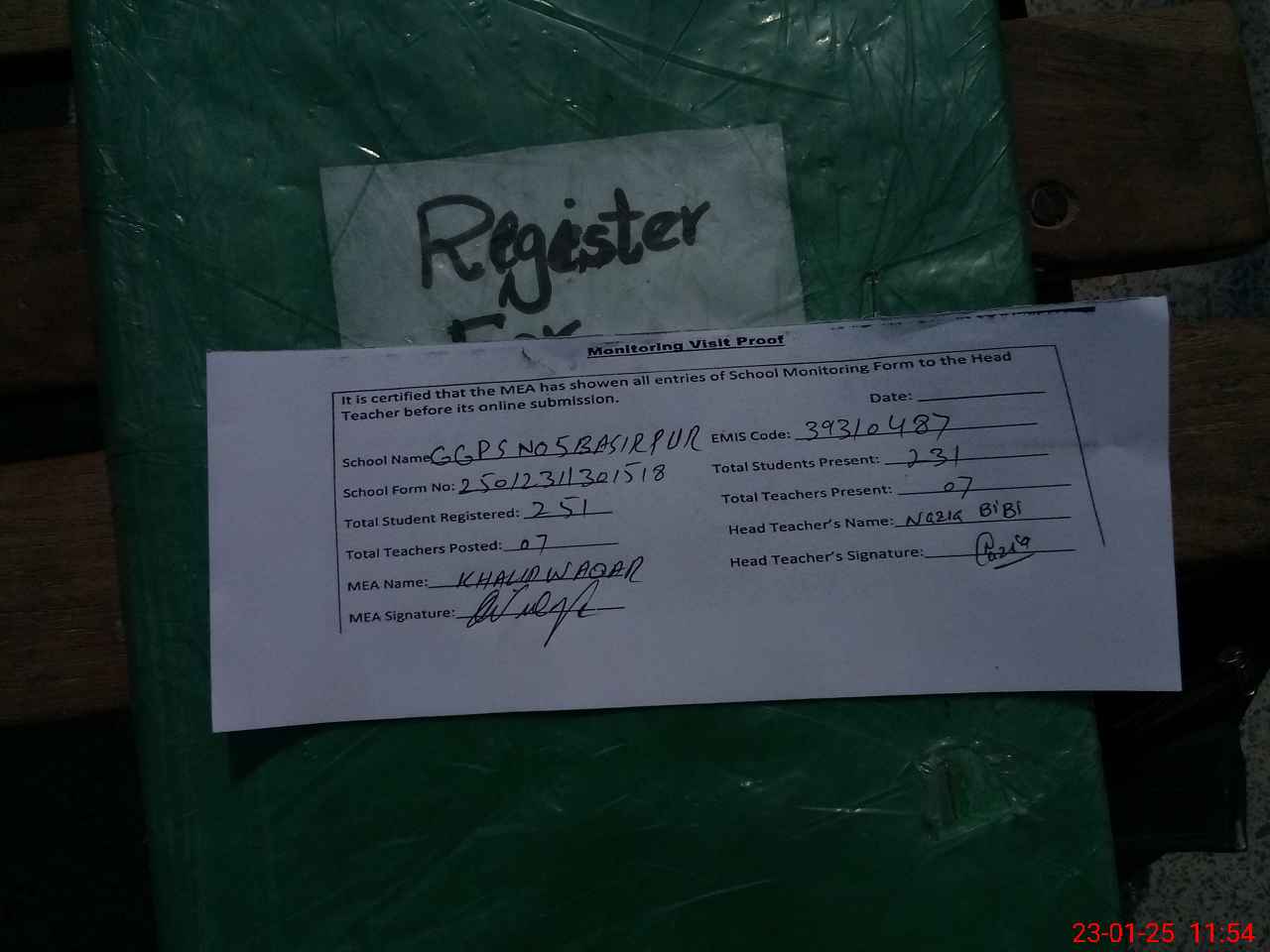 | EMIS Code: 39310487 | Name of School: GGPS NO. 5 BASIR PUR | |||