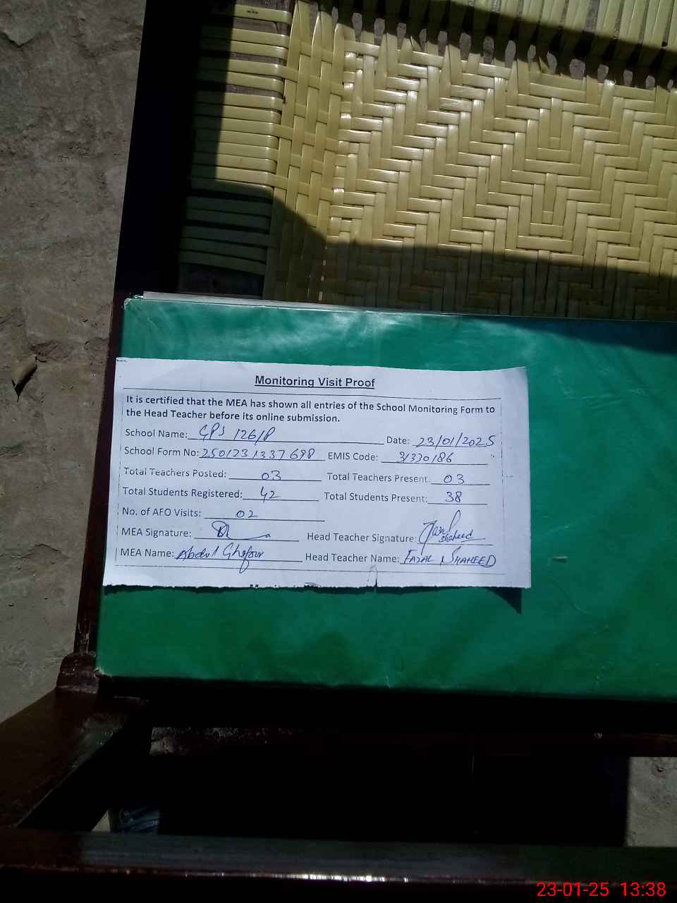 | EMIS Code: 31330186 | Name of School: GPS CHAK NO. 126/P | |||
