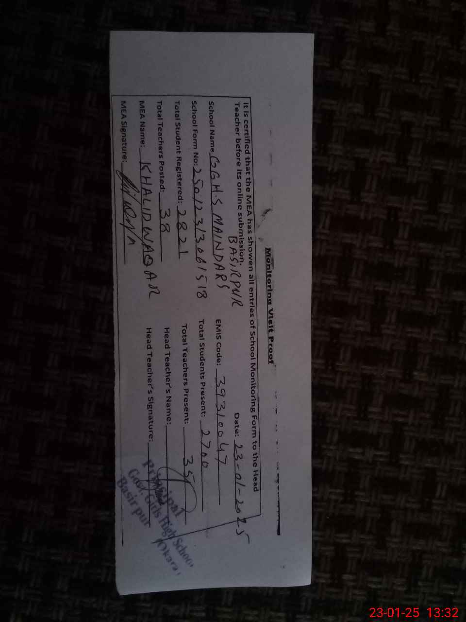 | EMIS Code: 39310047 | Name of School: GGHS MAIN DARS ROAD BASIR PUR | |||