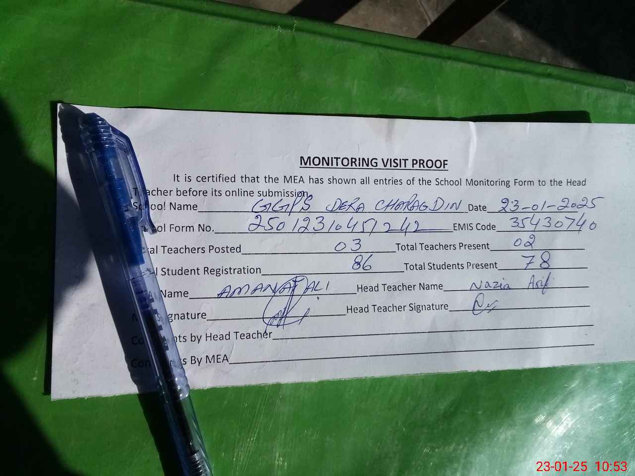 | EMIS Code: 35430740 | Name of School: GGPS DERA CHARAGHDIN | |||