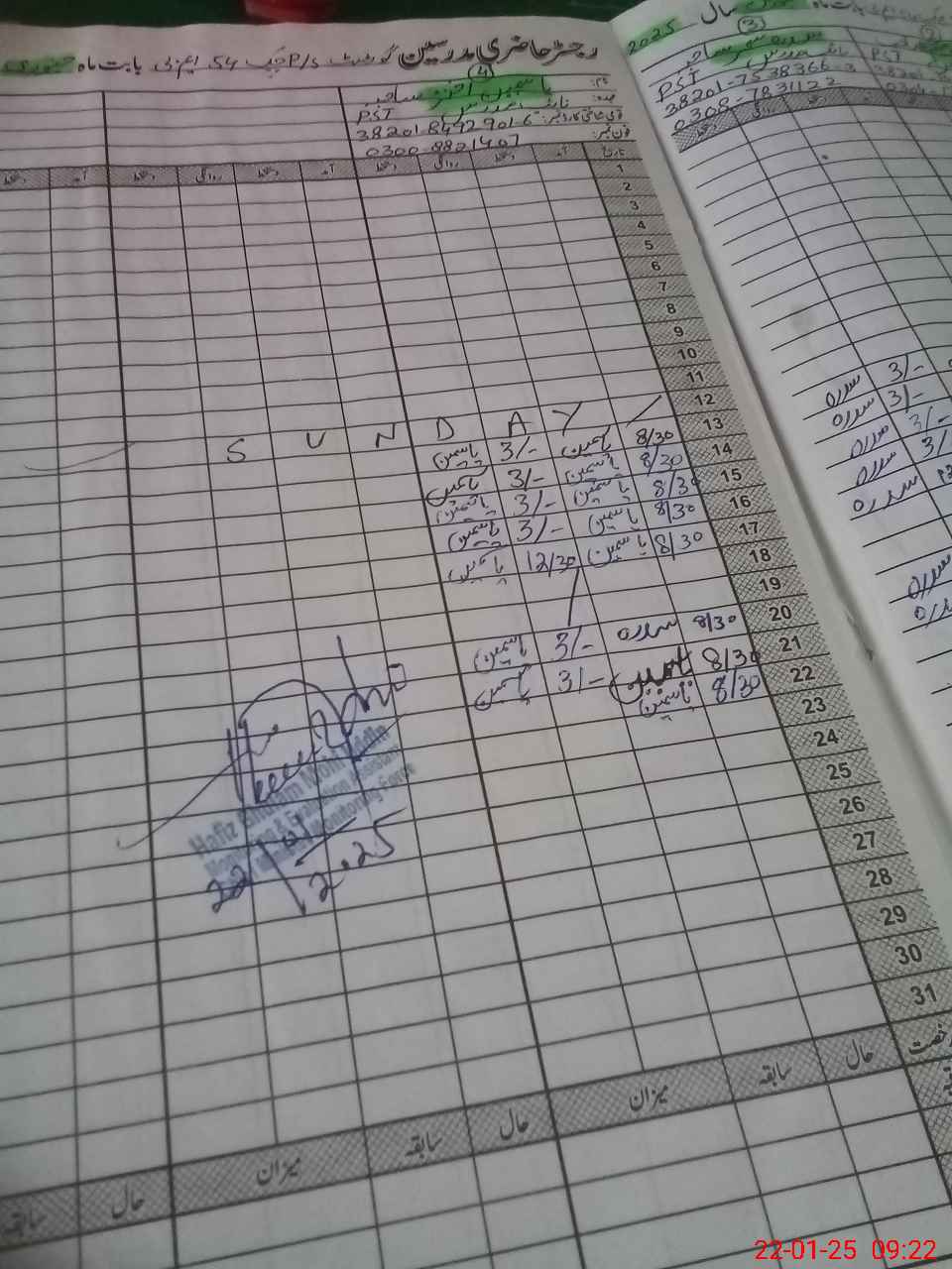 | CNIC | Full Name | Designation | R/C | Absence During Last Calender Month |