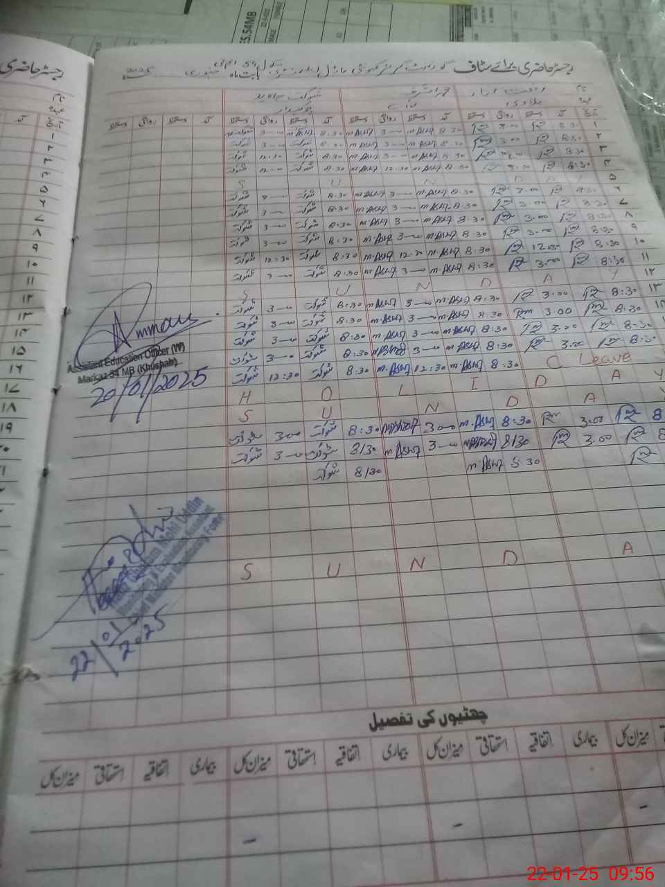 | CNIC | Full Name | Designation | R/C | Absence During Last Calender Month |