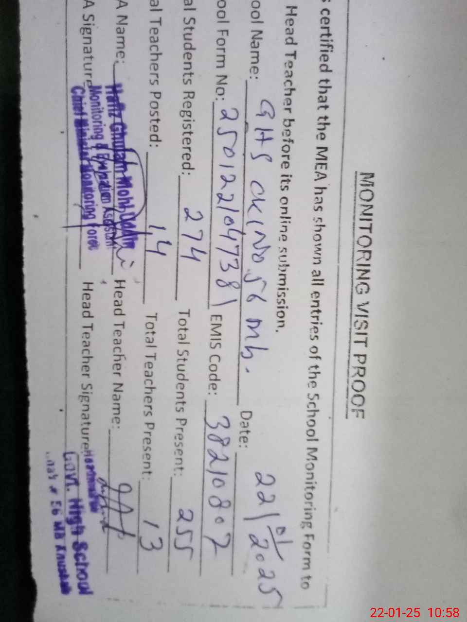 | EMIS Code: 38210807 | Name of School: GHS CHAK NO. 56 MB | |||