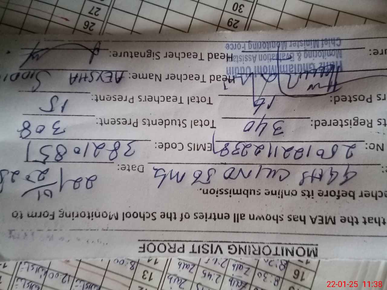 | Attendance Register | Head Teacher | MEA with School | Visit Proof |