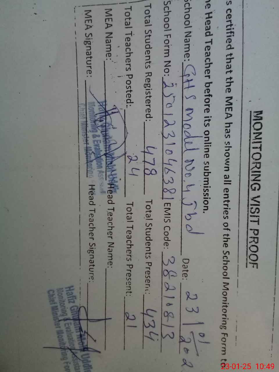 | EMIS Code: 38210813 | Name of School: GHS MODEL NO. 4 JAUHARABAD | |||