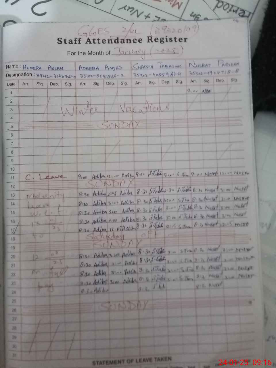 | 34**** | Hu**** As**** | Regular | 4 | 0 | 0 | 0 | 0 | 0 | 0 | 0 | 4 | Maternity | |