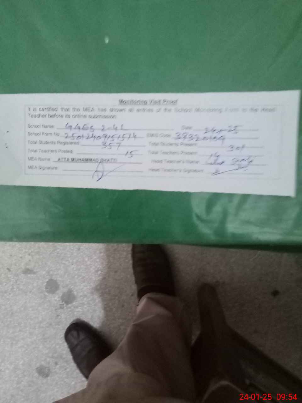 | Attendance Register | Head Teacher | MEA with School | Visit Proof |