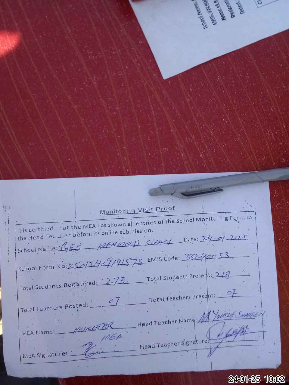 | EMIS Code: 33240053 | Name of School: GES MAHMOOD SHAH | |||