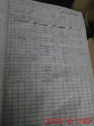 | CNIC | Full Name | Designation | R/C | Absence During Last Calender Month |