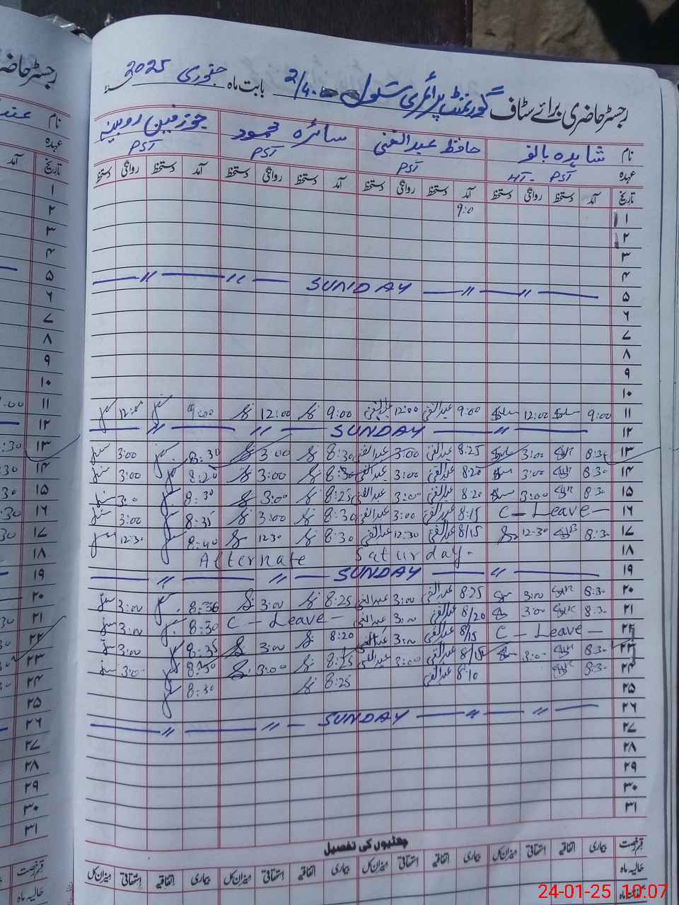 | CNIC | Full Name | Designation | R/C | Absence During Last Calender Month |