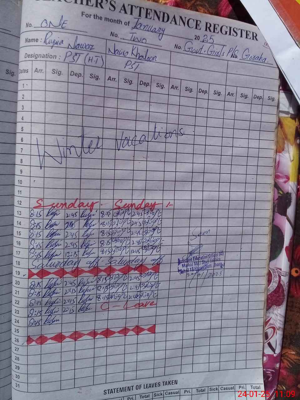 | 33**** | Na**** Kh**** | 1 | 1 | 0 | 0 | 0 | 0 | 0 | 0 | 0 | 0 | 0 | Absent (Un-Authorized) |