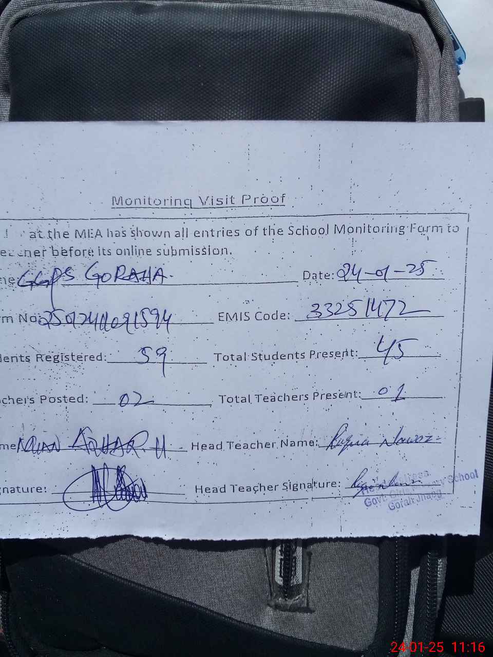 | EMIS Code: 33251472 | Name of School: GGPS GORAHA | |||